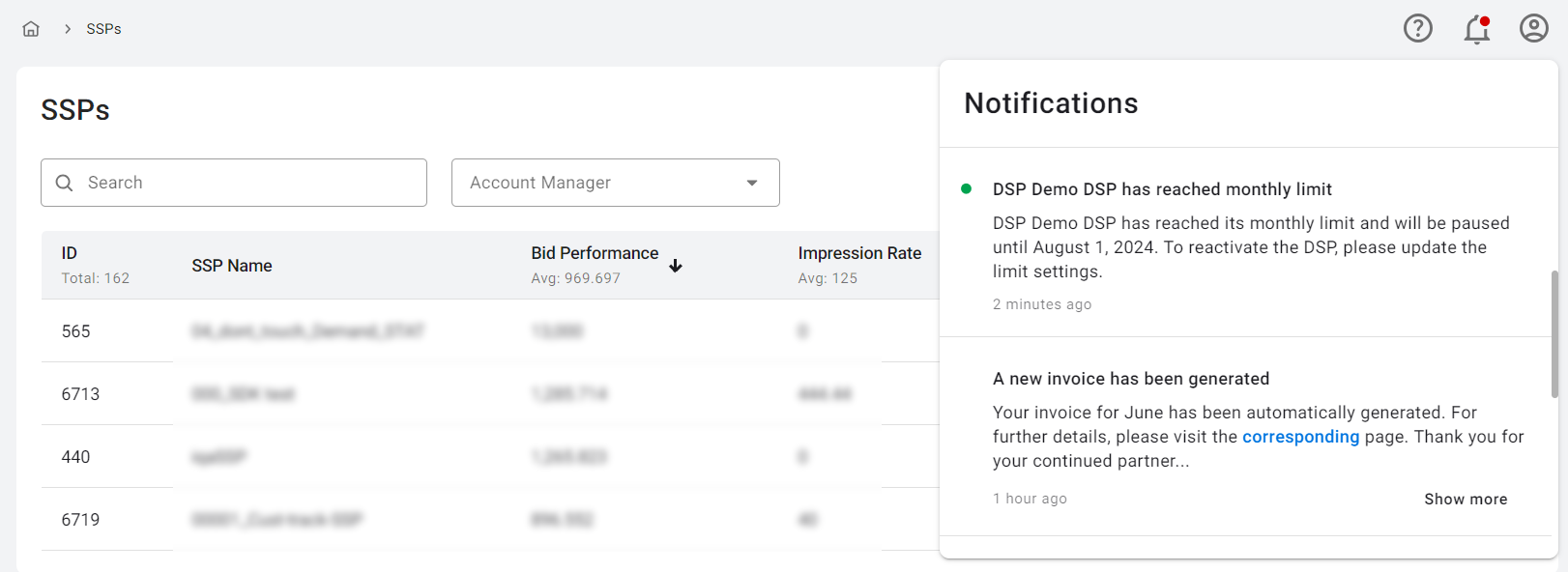 The Platform Notifications feature, accessible via the "bell" icon on the top bar of the main window, is designed to keep you informed about important events and updates without overwhelming you.