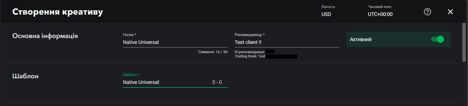 Налаштування, які стосуються нативної реклами версії 1.0 згідно зі стандартом IAB, не обов'язкові. Тип розташування і тип рекламного місця відповідають типу розміщення і типу контенту нативної реклами версії 1.1. Ми рекомендуємообрати всі налаштування нижче, оскільки деякі паблішери можуть використовувати стару версію нативної реклами.